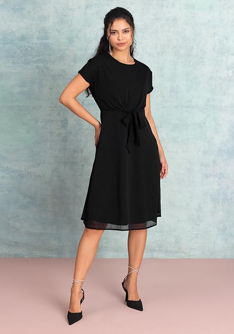 Black Front Tie Up Mini Dress