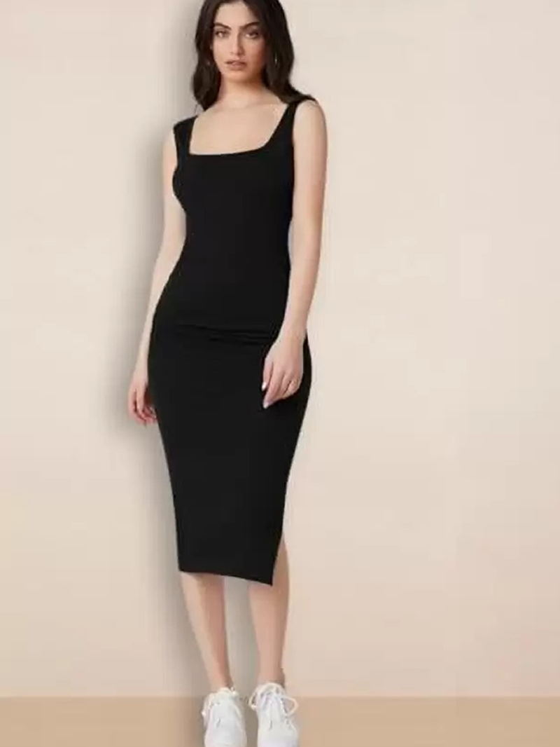 - Square-Neck A-Line Design: The square-neck A-line design adds a modern twist to the classic bodycon dress. The square neckline offers a chic and sophisticated look, while the A-line silhouette provides a flattering fit that skims over the body.
