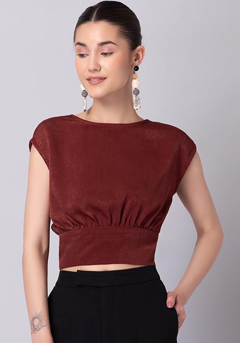 Brown Satin Open Back Crop Top